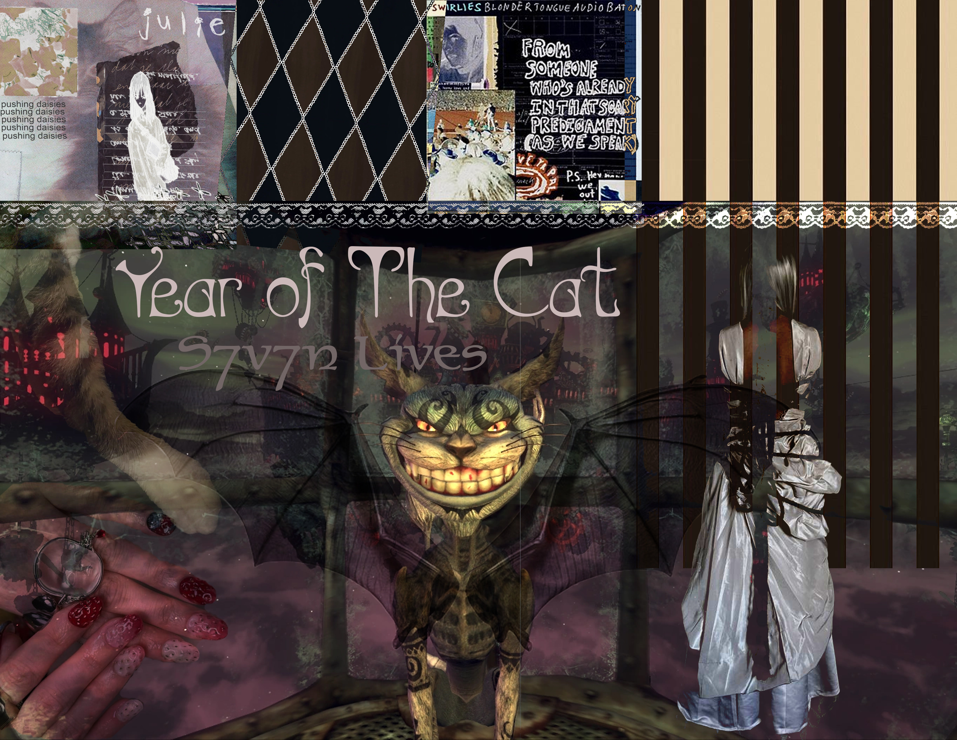 S7V7N LIVES by Year of The Cat is a contemporary and alternative rendition of Chinese culture, inspired by grunge punk and visual kei fashions. Designed for the girl who feels alien and anomalistic, she is the cat that beats the rabbit in her s7v7nth life.